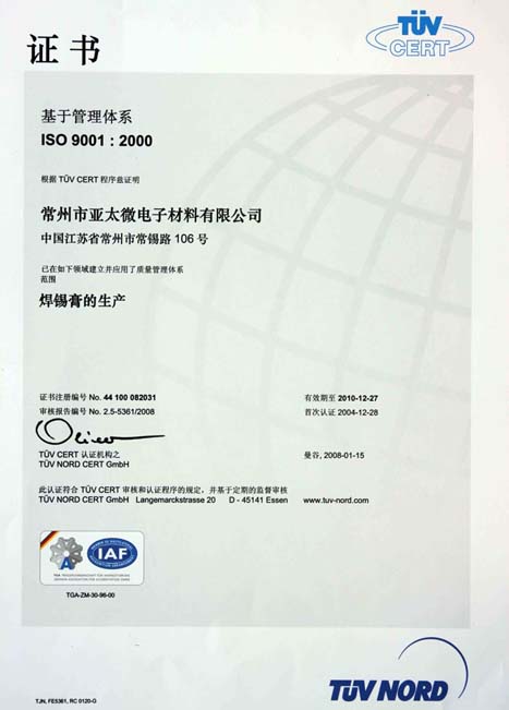 ISO 9001 证书